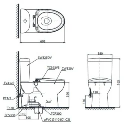 7. Bản vẽ kỹ thuật 2D bồn cầu CS325DRT10