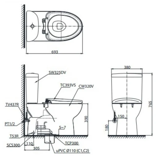 Bồn cầu TOTO CS325DRT10 có tâm xả 305mm, là thông số phổ biến phù hợp với hầu hết hệ thống thoát sàn hiện có tại Việt Nam. Nhờ cấu trúc hai khối, việc lắp đặt và bảo trì két nước trở nên đơn giản và nhanh chóng hơn. Phụ kiện bên trong két như van xả, phao cấp nước… cũng có thể dễ dàng thay thế nếu cần mà không phải tháo dỡ toàn bộ thân cầu.