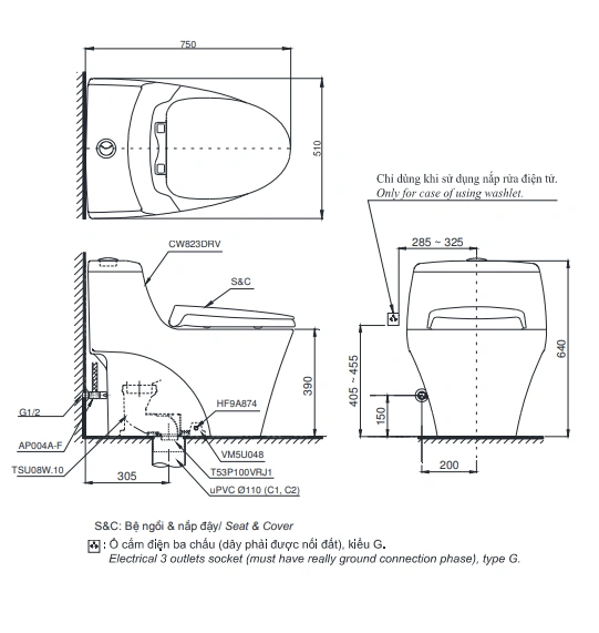 5. Bản vẽ kỹ thuật 2D bồn cầu MS823DRW11