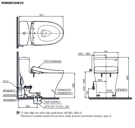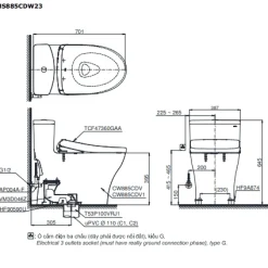 5. Bản vẽ kỹ thuật 2D bồn cầu thông minh TOTO MS885CDW23