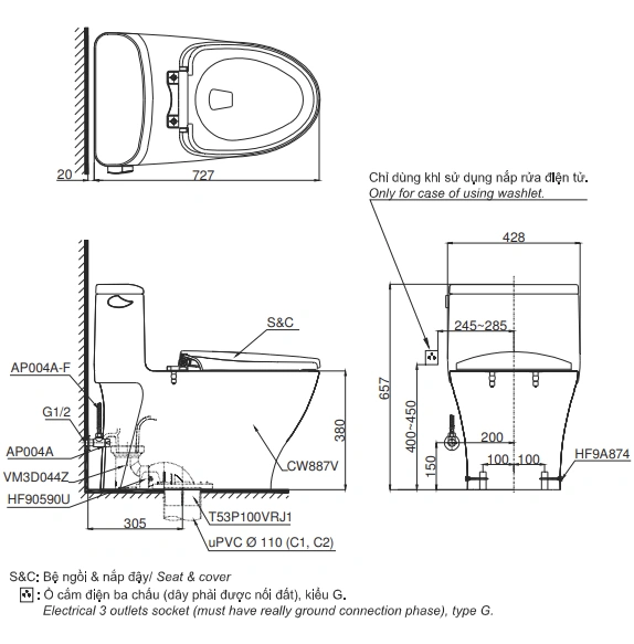 TOTO MS887RW16 đi kèm với nắp rửa điện tử WASHLET TCF4911EZ – một trong những dòng nắp thông minh tiên tiến nhất của TOTO. Nắp điện tử này mang đến trải nghiệm vệ sinh cá nhân hoàn toàn mới, nâng cao tiện nghi và đặc biệt thân thiện với người cao tuổi, phụ nữ mang thai hoặc người có làn da nhạy cảm.