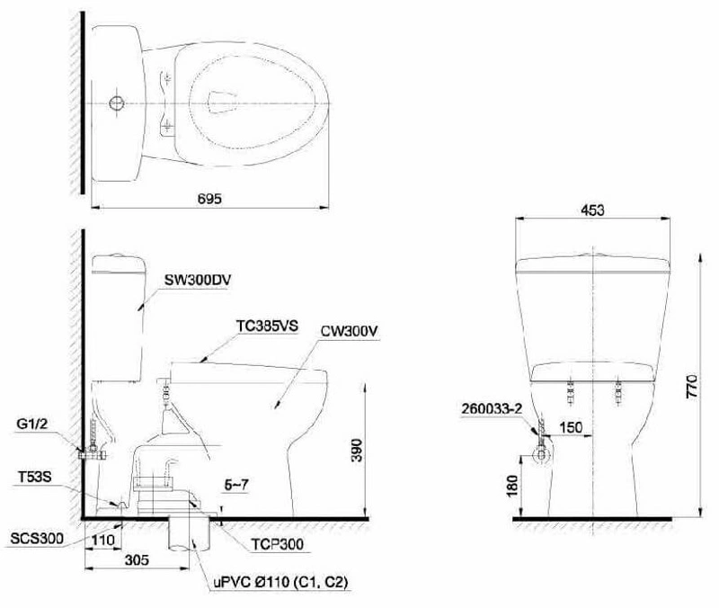 4. Bản vẽ kỹ thuật 2D bồn cầu CS300DT3Y1