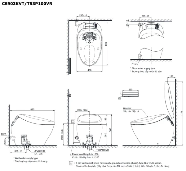 5. Bản vẽ kỹ thuật 2D bồn cầu NEOREST NX CS903KVT/T53P100VR