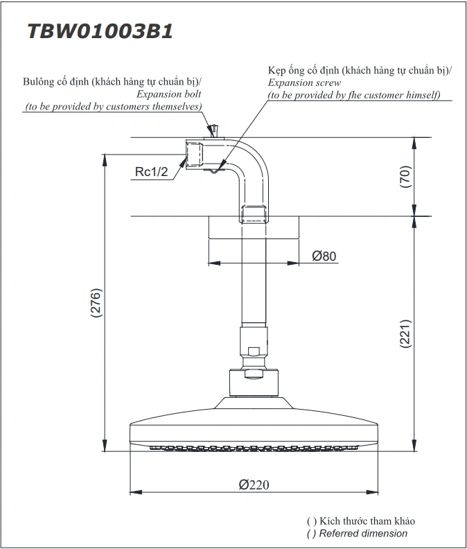 Loại sản phẩm: Bát sen tắm gắn trần (Ceiling-Mount Shower Head)