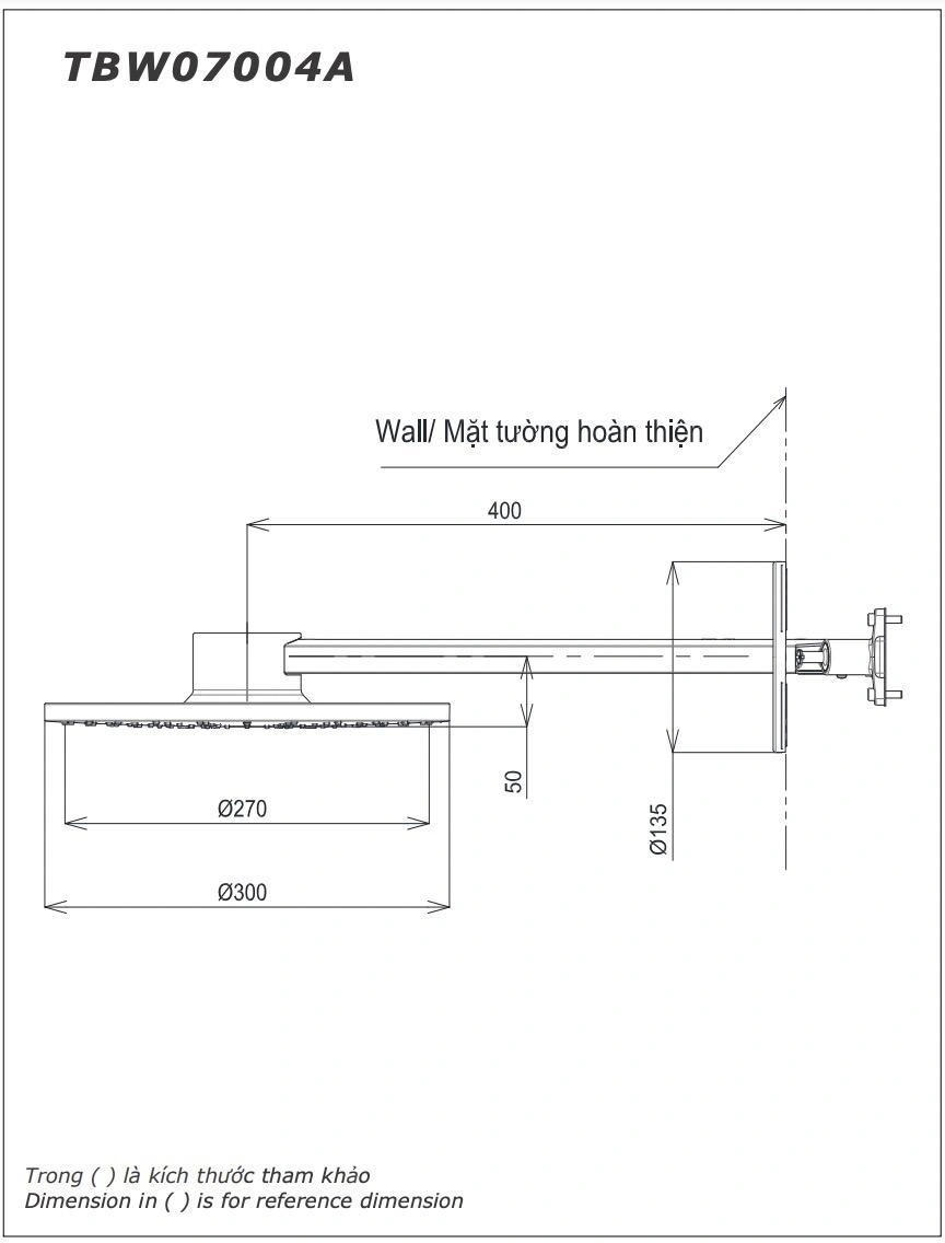 Thiết kế tròn lớn, đường kính 300 mm, cho tia nước phủ rộng và nhẹ nhàng.