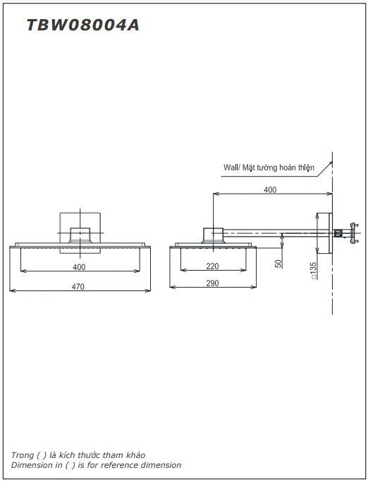 6. Bản vẽ kỹ thuật 2D bát sen âm tường TBW08004A/TBN01002B