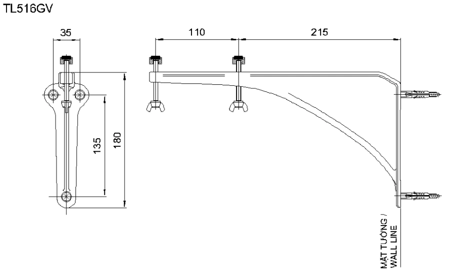 6. Bản vẽ kỹ thuật 2D bộ giá đỡ chậu âm bàn TL516GV