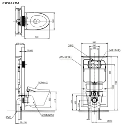 8. Bản vẽ kỹ thuật 2D bồn cầu treo tường CW822RA/WH172A/TCF4911Z/MB170P#SS
