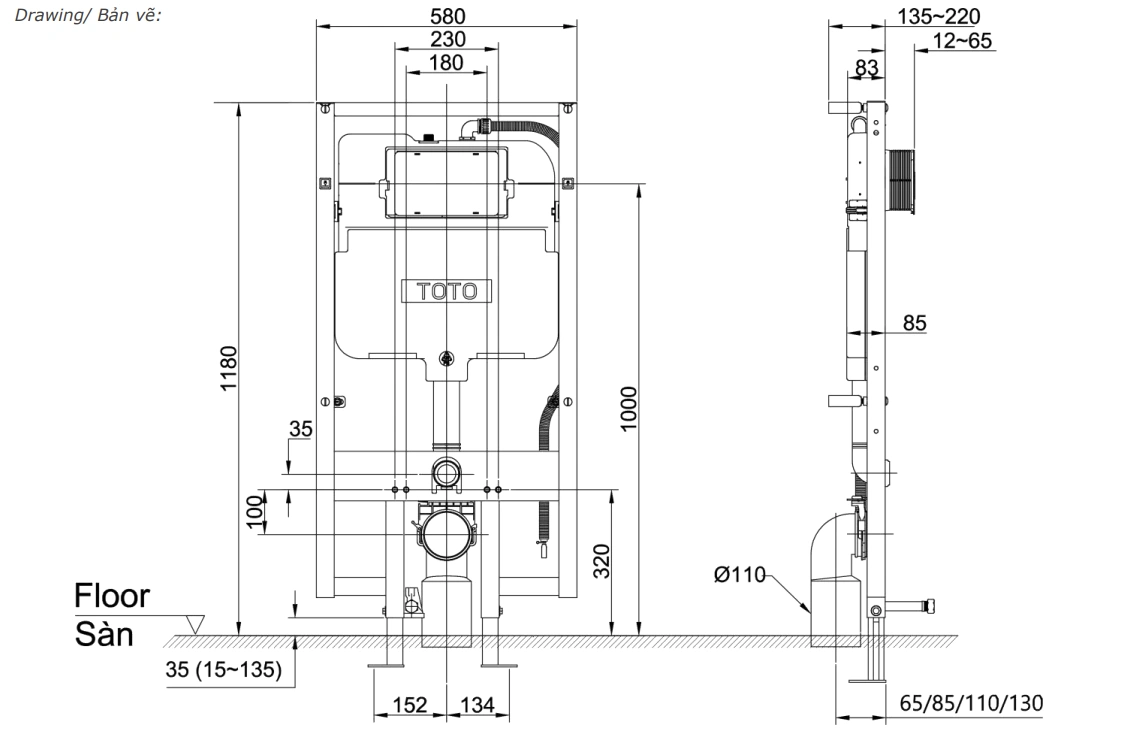 6. Bản vẽ kỹ thuật 2D két nước âm tường WH172AAT