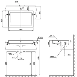6. Bản vẽ kỹ thuật 2D lavabo bán âm bàn LW646JW-F