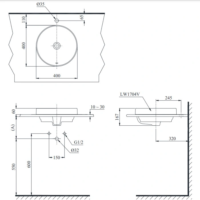 6. Bản vẽ kỹ thuật 2D lavabo Đặt Bàn L1704