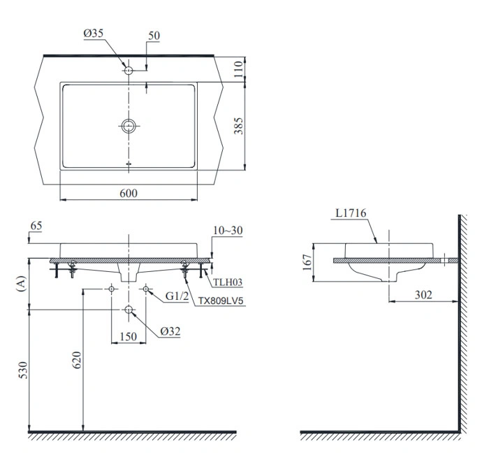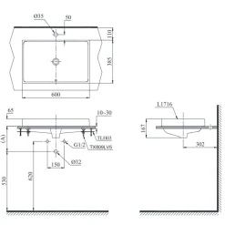 6. Bản vẽ kỹ thuật 2D lavabo Đặt Bàn L1716