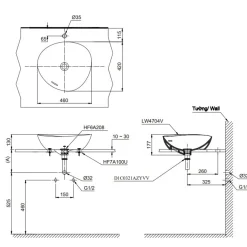 6. Bản vẽ kỹ thuật 2D lavabo Đặt Bàn LT4704G19