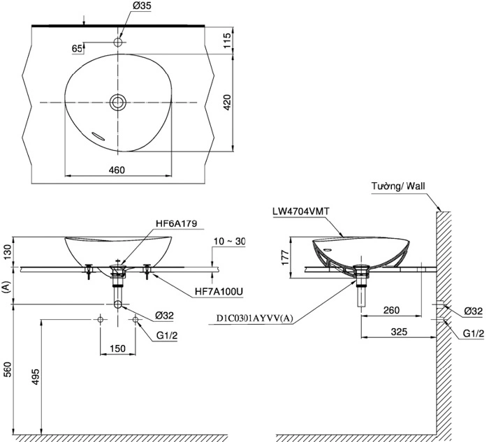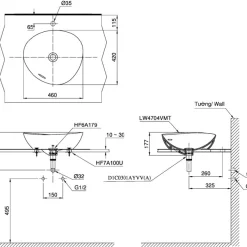 6. Bản vẽ kỹ thuật 2D lavabo Đặt Bàn LT4704MTG17