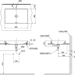 6. Bản vẽ kỹ thuật 2D lavabo Đặt Bàn LT4716MTG19