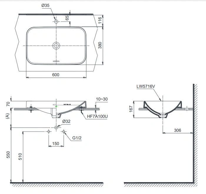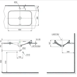 6. Bản vẽ kỹ thuật 2D lavabo Đặt Bàn LT5716