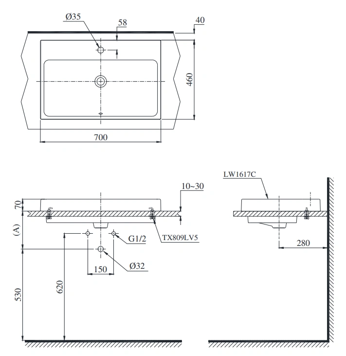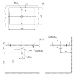 6. Bản vẽ kỹ thuật 2D lavabo Đặt Bàn LW1617C