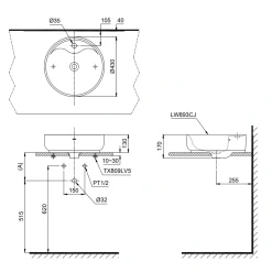5. Bản vẽ kỹ thuật 2D lavabo Đặt Bàn LW893CJW-F