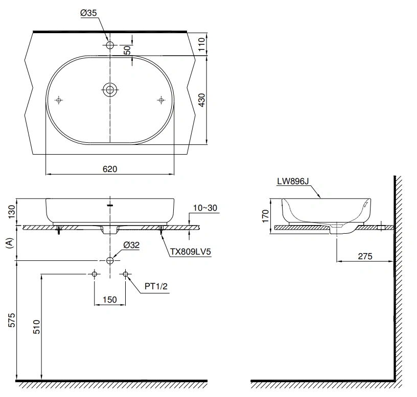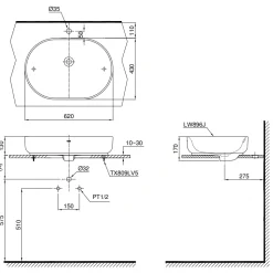 5. Bản vẽ kỹ thuật 2D lavabo Đặt Bàn LW896JW-F