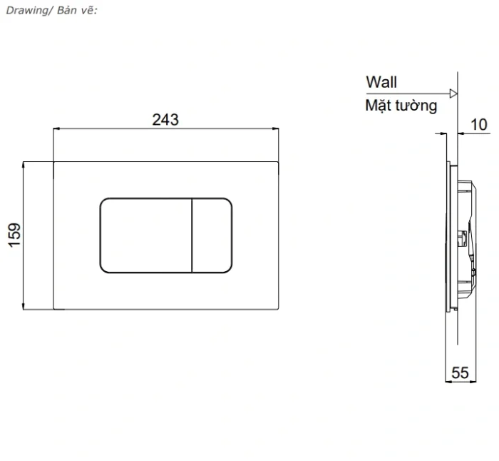 7. Bản vẽ kỹ thuật 2D mặt nạ xả nhấn MB170P#WH