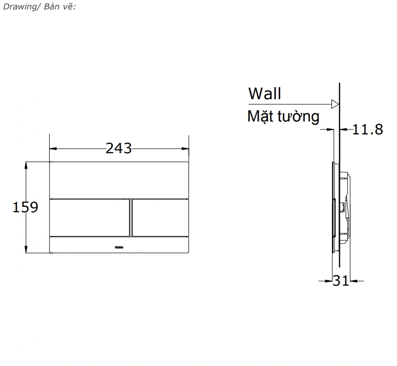 Loại sản phẩm: Mặt nạ xả nhấn kép két nước âm tường