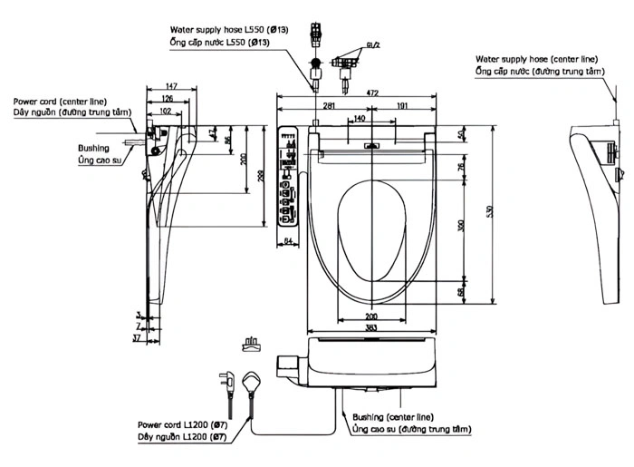 8. Bản vẽ kỹ thuật 2D nắp rửa điện tử WASHLET C2/TCF23410AAA