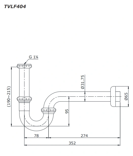 P‑Trap TVLF404 sở hữu thiết kế chữ P truyền thống, giúp giữ nước để tạo hàng rào ngăn mùi từ hệ thống cống. Kích thước tổng dài tới 352 mm, phù hợp với nhiều kiểu bố trí ống thải thông dụng.