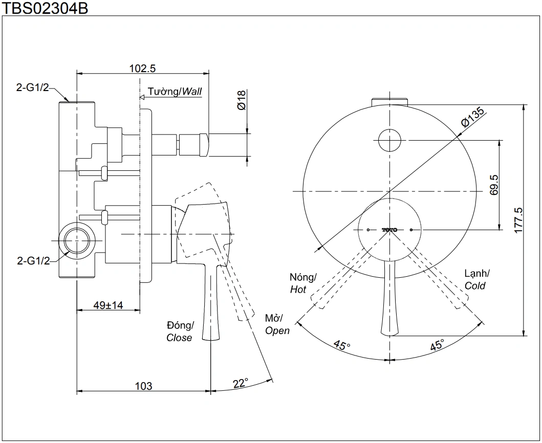 6. Bản vẽ kỹ thuật 2D tay gật gù nóng lạnh TBS02304B