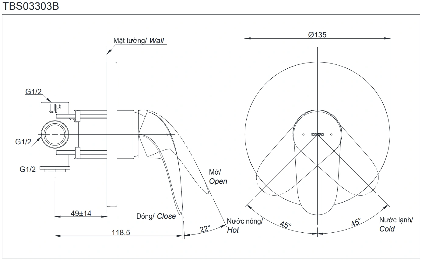 TBS03303B nổi bật với thiết kế gọn gàng, bề mặt mạ crom sáng bóng, chống oxy hóa và bám bẩn. Sản phẩm có khả năng trộn nóng lạnh linh hoạt, điều chỉnh nhiệt độ chính xác và nhanh chóng.