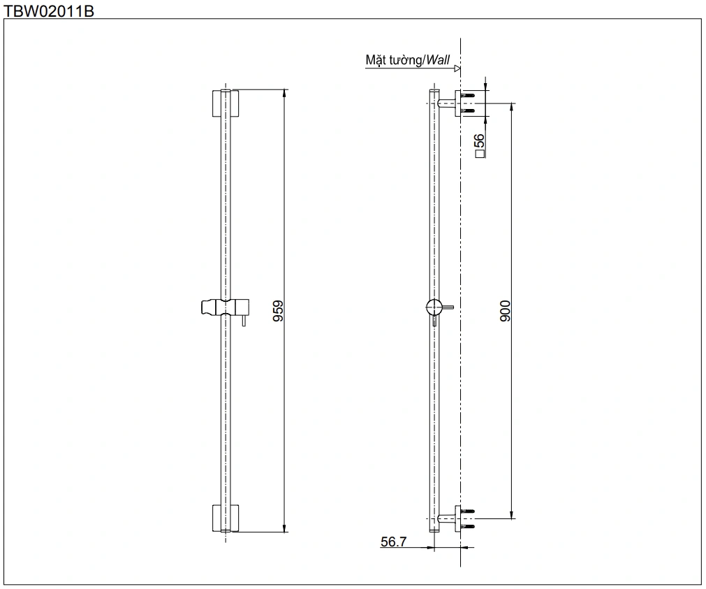6. Bản vẽ kỹ thuật 2D thanh trượt sen tắm TBW02011B