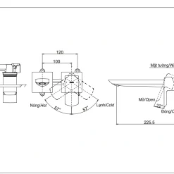 Loại sản phẩm: Vòi lavabo nóng lạnh gắn tường