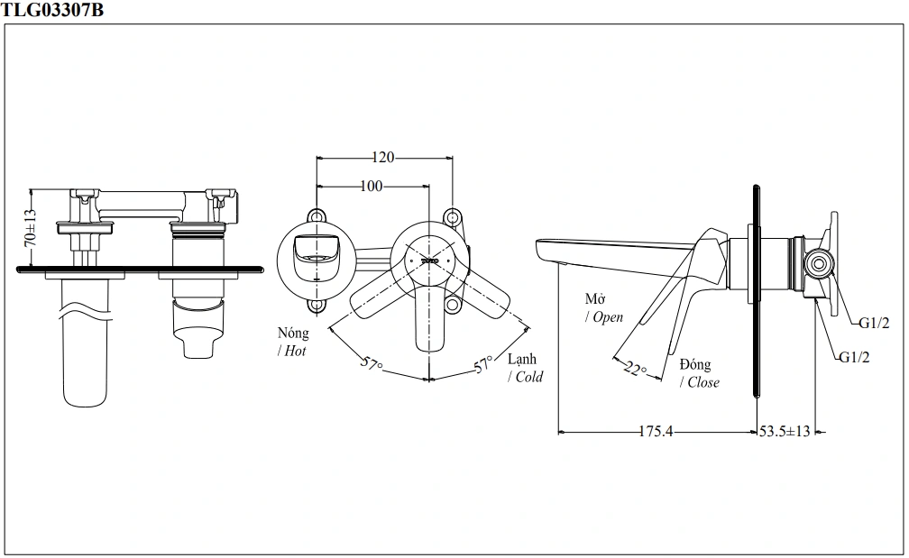 6. Bản vẽ kỹ thuật 2D vòi lavabo âm tường TLG03307BB