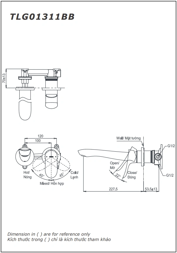 Loại sản phẩm: Vòi lavabo nóng lạnh gắn tường