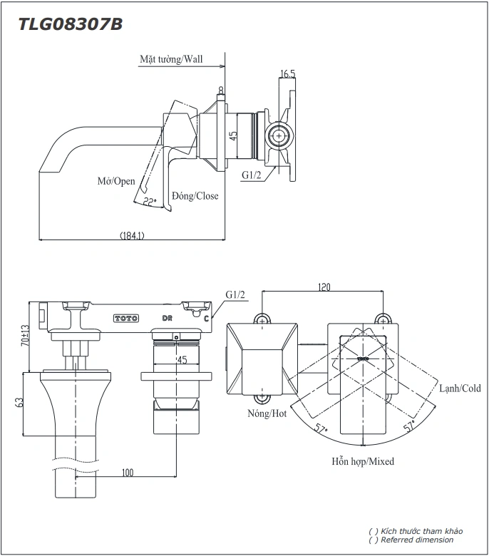 6. Bản vẽ kỹ thuật 2D vòi lavabo âm tường TLG08307BA