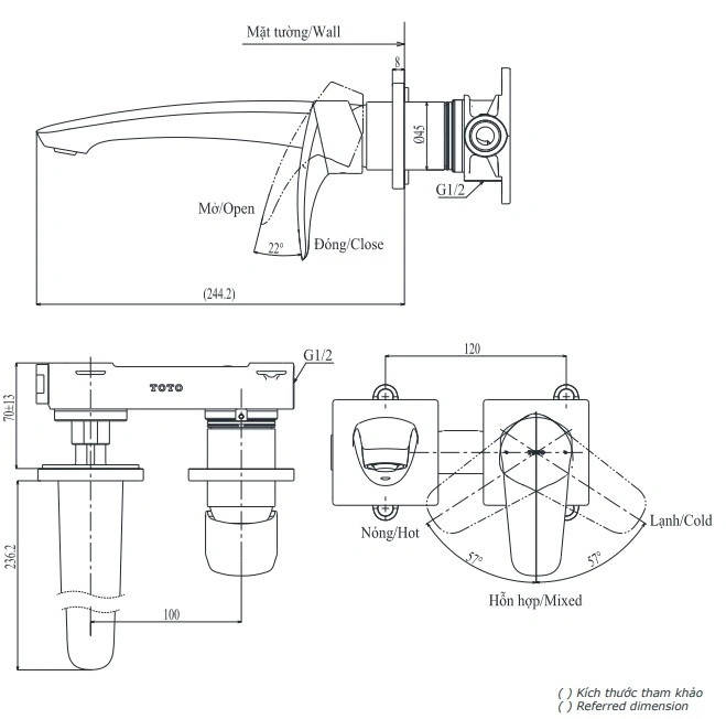 Loại sản phẩm: Vòi lavabo nóng lạnh gắn tường