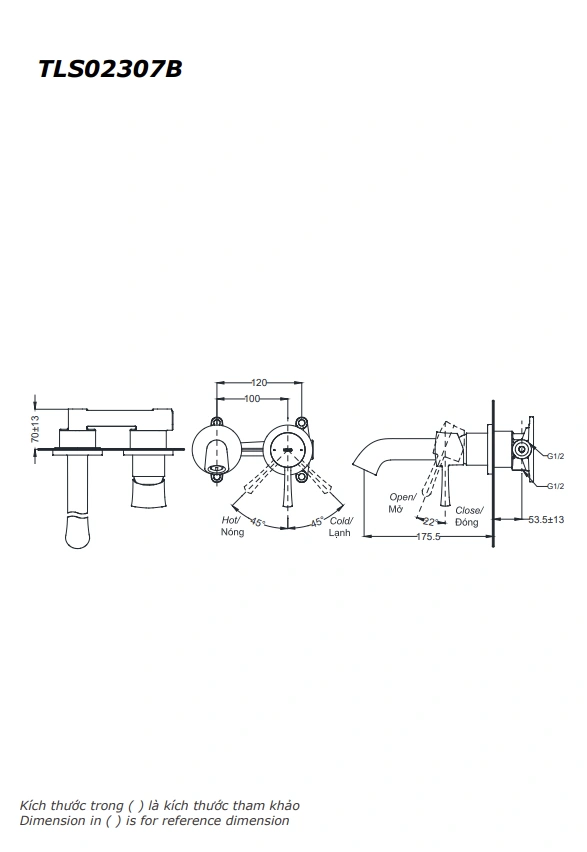6. Bản vẽ kỹ thuật 2D vòi lavabo âm tường TLS02307B