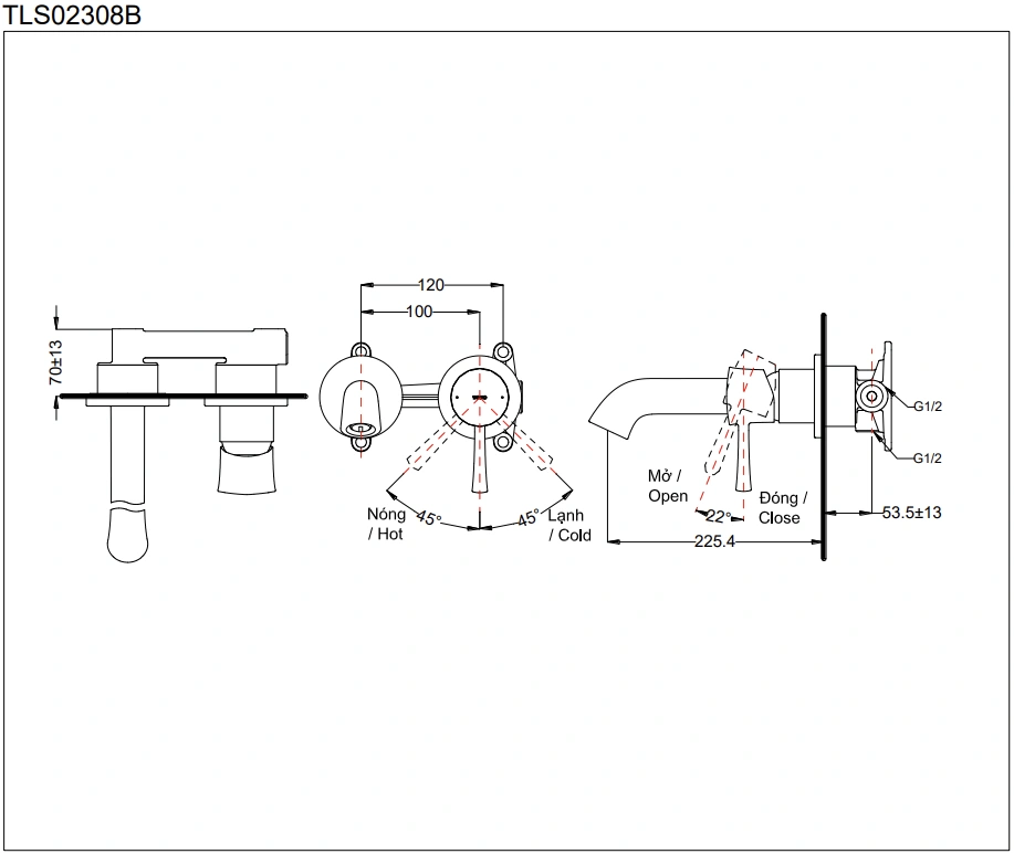 6. Bản vẽ kỹ thuật 2D vòi lavabo âm tường TLS02308B