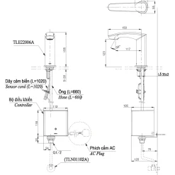 6. Bản vẽ kỹ thuật 2D vòi lavabo cảm ứng TLE22006A
