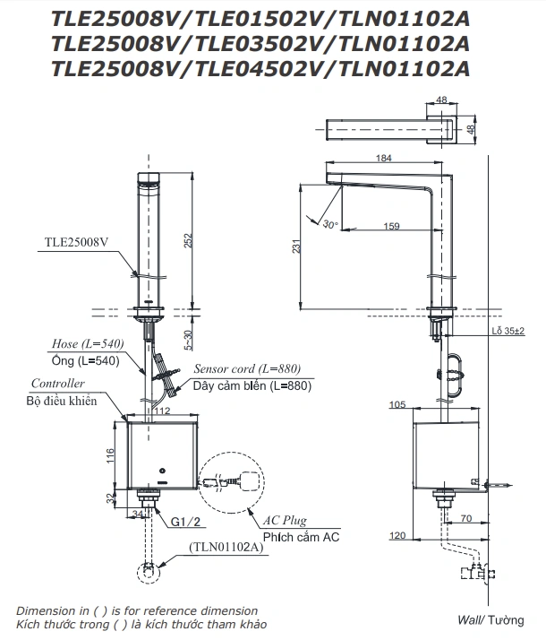6. Bản vẽ kỹ thuật 2D vòi lavabo cảm ứng TLE25008V