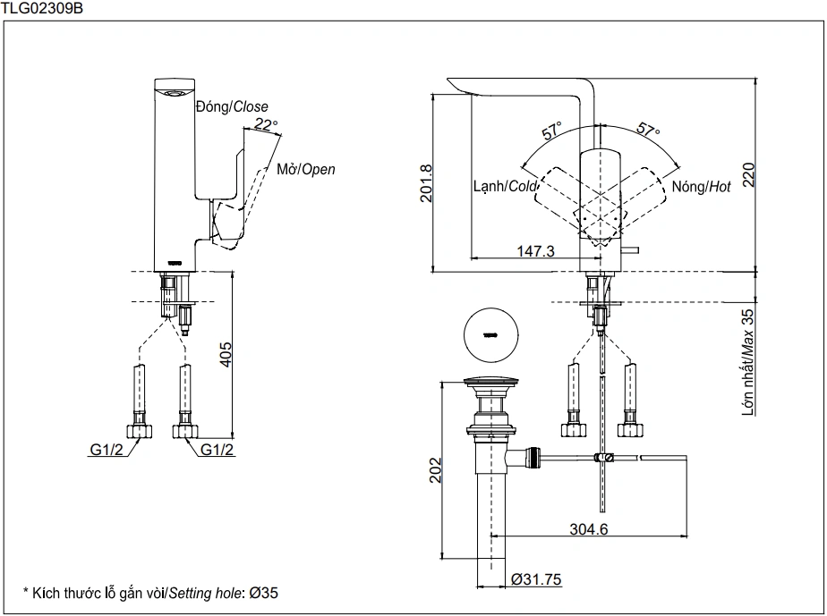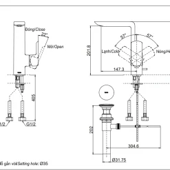 6. Bản vẽ kỹ thuật 2D vòi lavabo gật gù nóng lạnh TLG02309BB