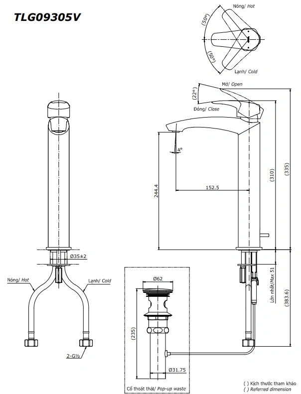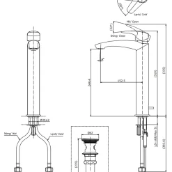 6. Bản vẽ kỹ thuật 2D vòi lavabo gật gù nóng lạnh TLG09305V