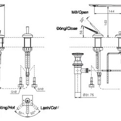 6. Bản vẽ kỹ thuật 2D vòi lavabo gật gù nóng lạnh TLP02304B