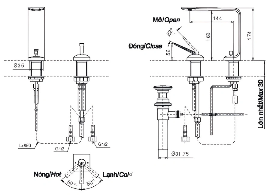 Thiết kế nhỏ gọn, dễ dàng phối hợp với nhiều kiểu lavabo.