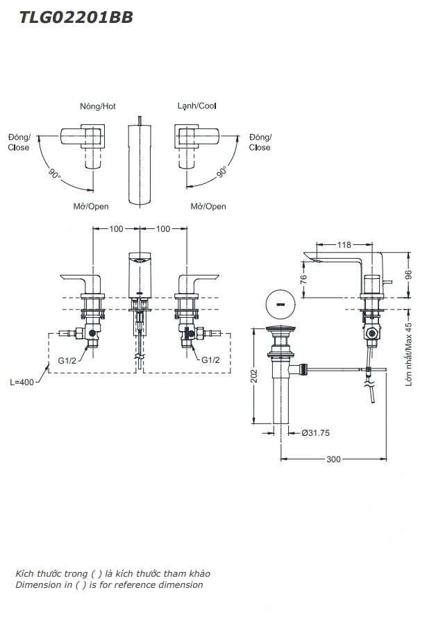 6. Bản vẽ kỹ thuật 2D vòi lavabo tay vặn nóng lạnh TLG02201BB