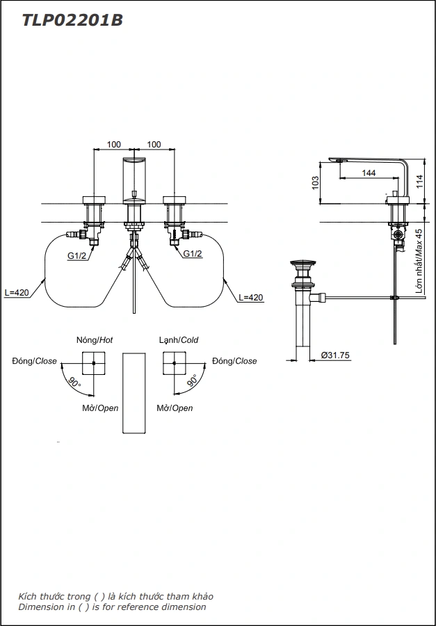 6. Bản vẽ kỹ thuật 2D vòi lavabo tay vặn nóng lạnh TLP02201BA