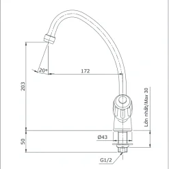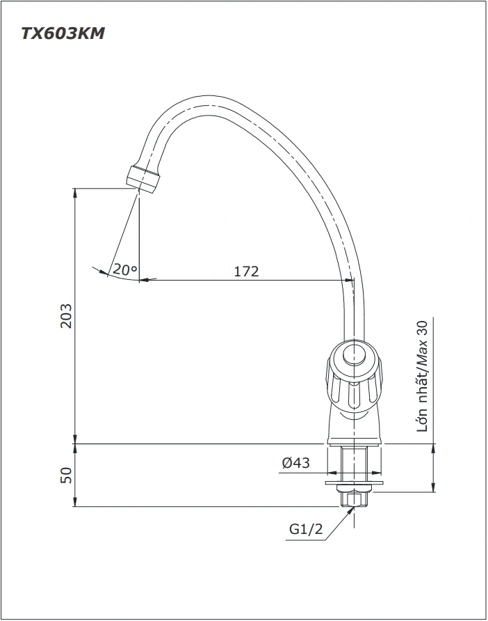 6. Bản vẽ kỹ thuật 2D vòi rửa chén bát lạnh TX603KM
