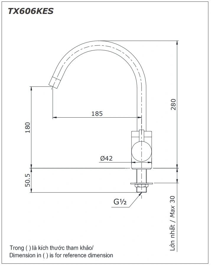 6. Bản vẽ kỹ thuật 2D vòi rửa chén bát lạnh TX606KES