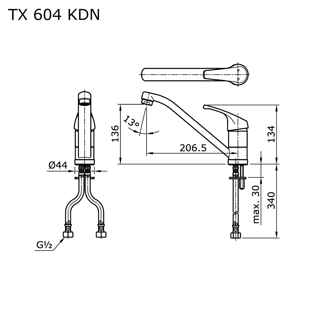 6. Bản vẽ kỹ thuật 2D vòi rửa chén bát nóng lạnh TX604KDN