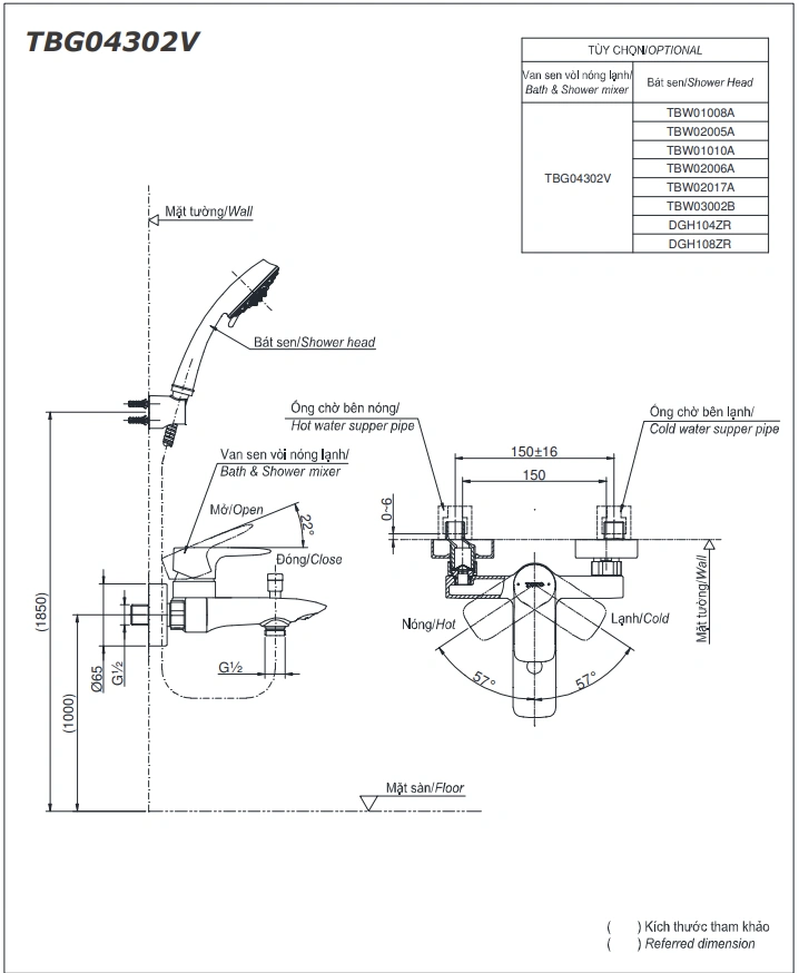 6. Bản vẽ kỹ thuật 2D vòi sen tắm nóng lạnh TBG04302VA/DGH104ZR