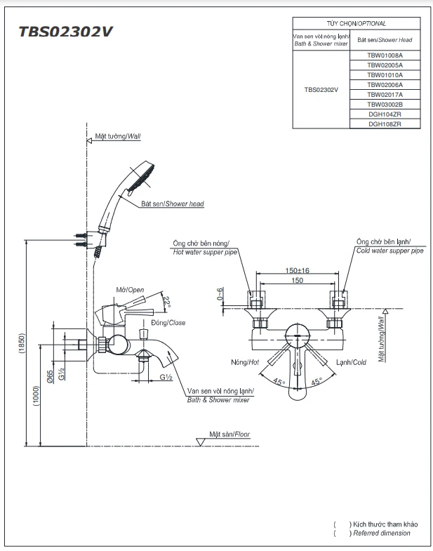 6. Bản vẽ kỹ thuật 2D vòi sen tắm nóng lạnh TBS02302V/DGH108ZR